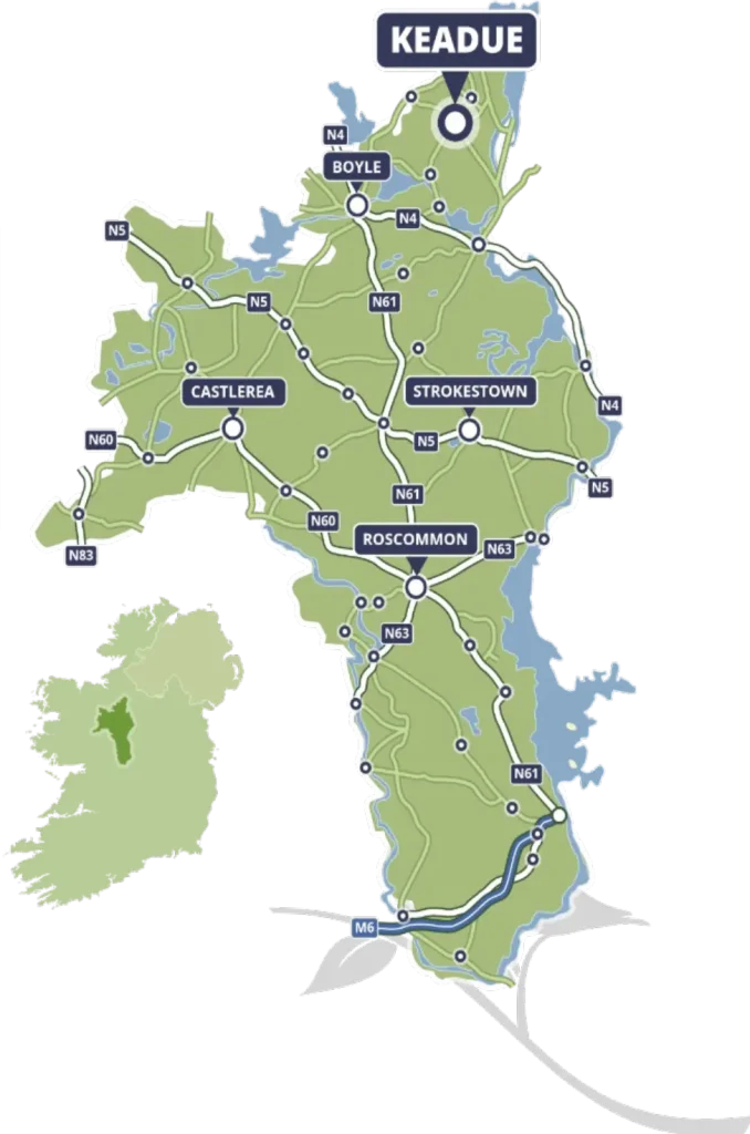 The village is committed to promoting its cultural heritage, enhancing the local environment, and supporting community initiatives. Its scenic surroundings, including rolling hills, lakes, and walking trails, provide a peaceful setting for exploration. Keadue’s achievements in the Tidy Towns competition reflect its focus on environmental care and community pride.